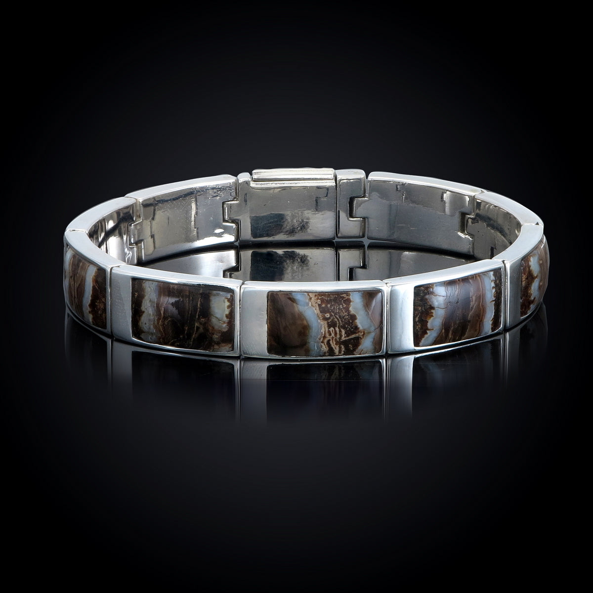 Woolly Mammoths roamed the planet for 250,000 years and died out during the last Ice Age. Occasionally, Mammoth fossils are unearthed in the former ‘Mammoth Steppe’ –– a biome spanning western Europe to eastern Alaska during the Late Pleistocene. Stabilised using a special process, this amazing artifact is suitable for everyday wear.