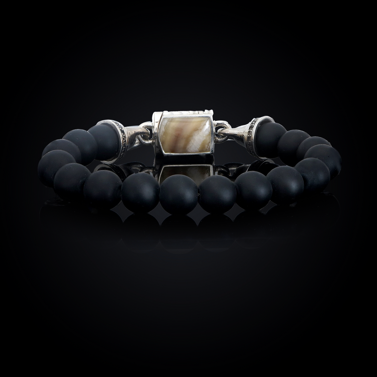 An absorber of negative energy –– Onyx is said to be a protective stone that will bring inner strength, self-confidence and mental discipline to its wearer. Indeed, the ancient Roman soldiers even entered battle carrying amulets of Sardonyx engraved with Mars –– the God of War. This was believed to bestow courage in battle.