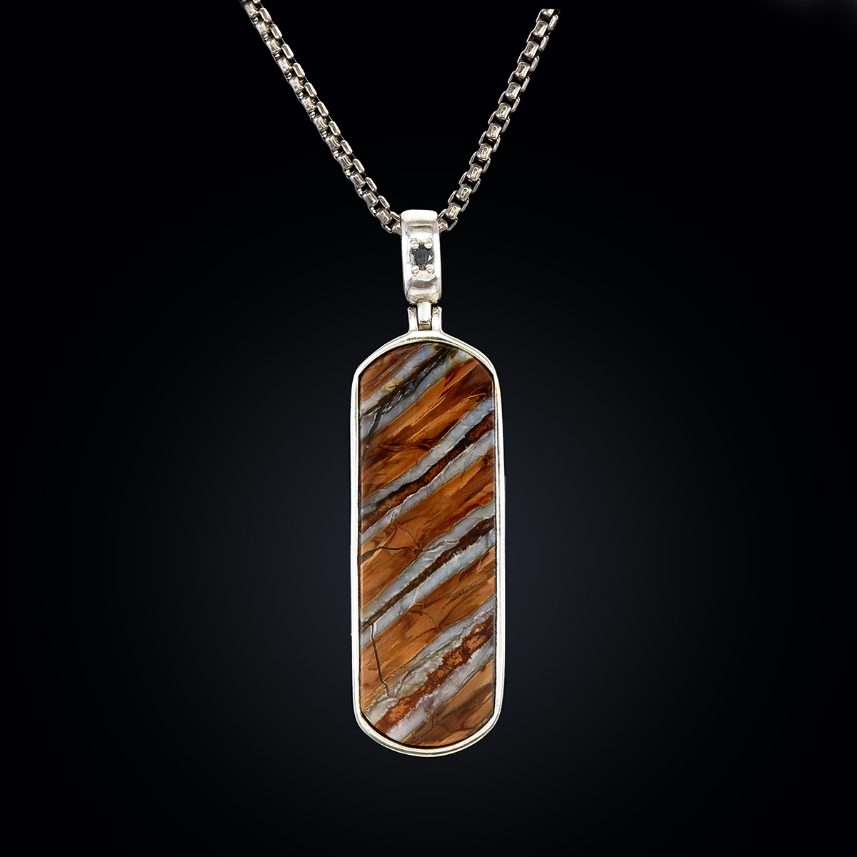 Woolly Mammoths roamed the planet for 250,000 years and died out during the last Ice Age. Occasionally, Mammoth fossils are unearthed in the former ‘Mammoth Steppe’ –– a biome spanning western Europe to eastern Alaska during the Late Pleistocene. Stabilised using a special process, this amazing artifact is suitable for everyday wear.
