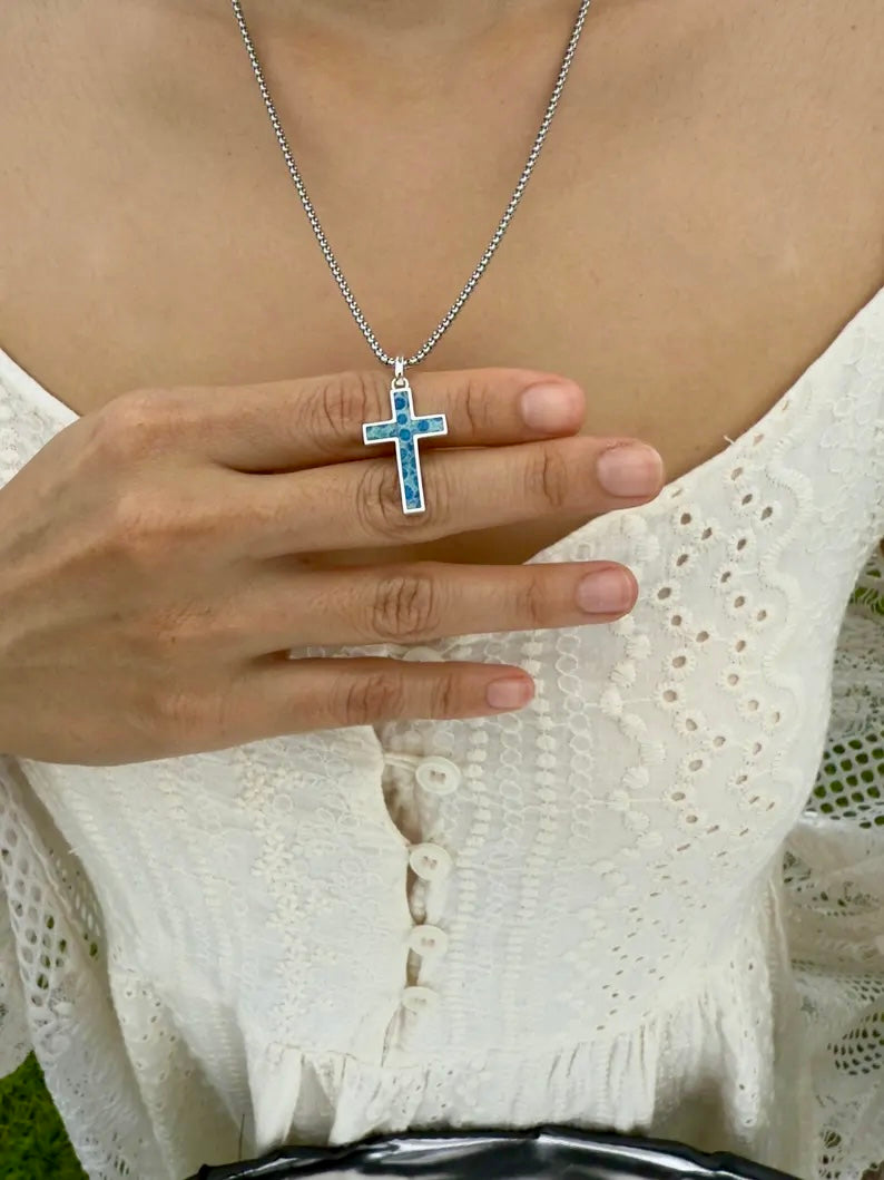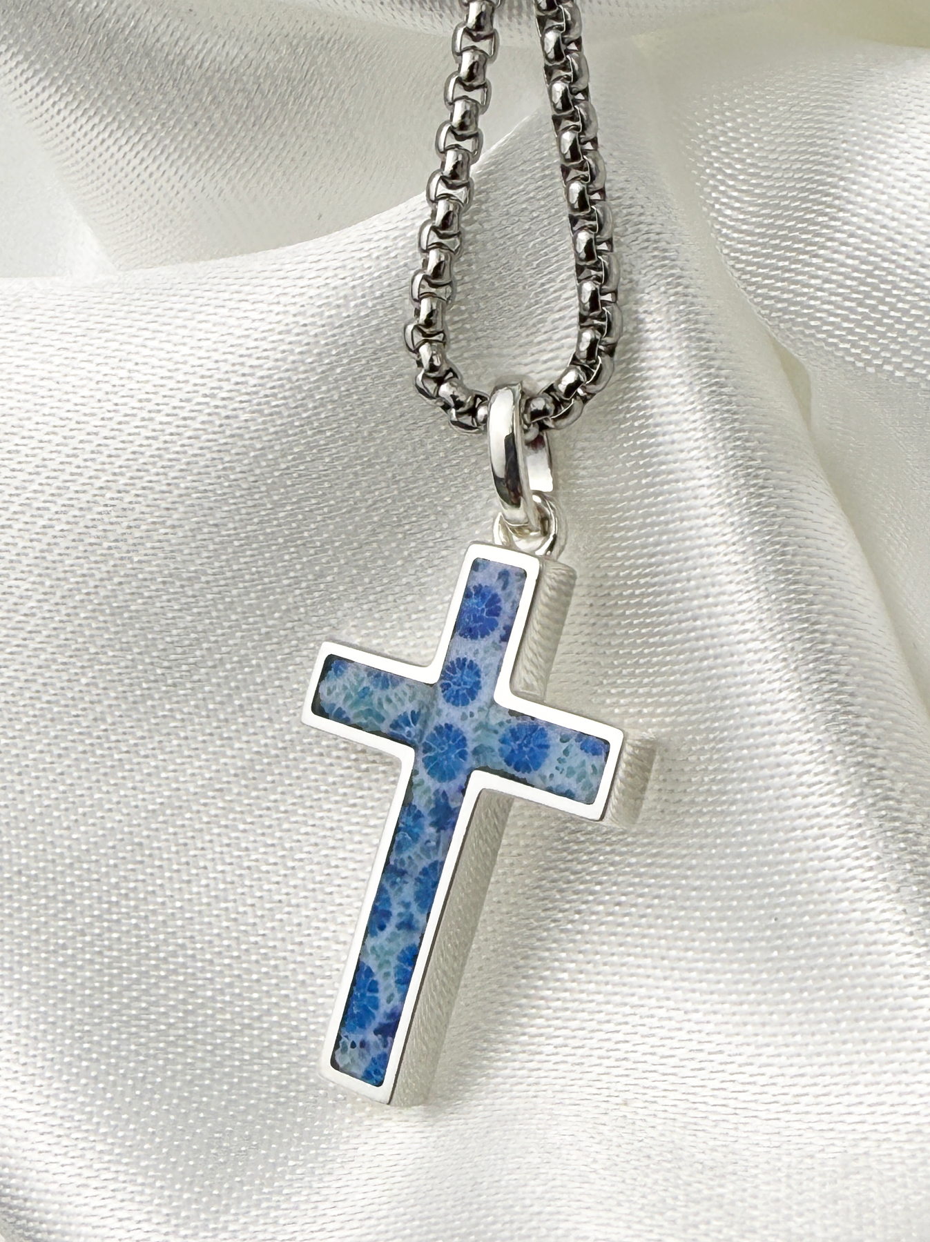 Inlaid into Sterling Silver, this unique necklace is truly one of a kind.