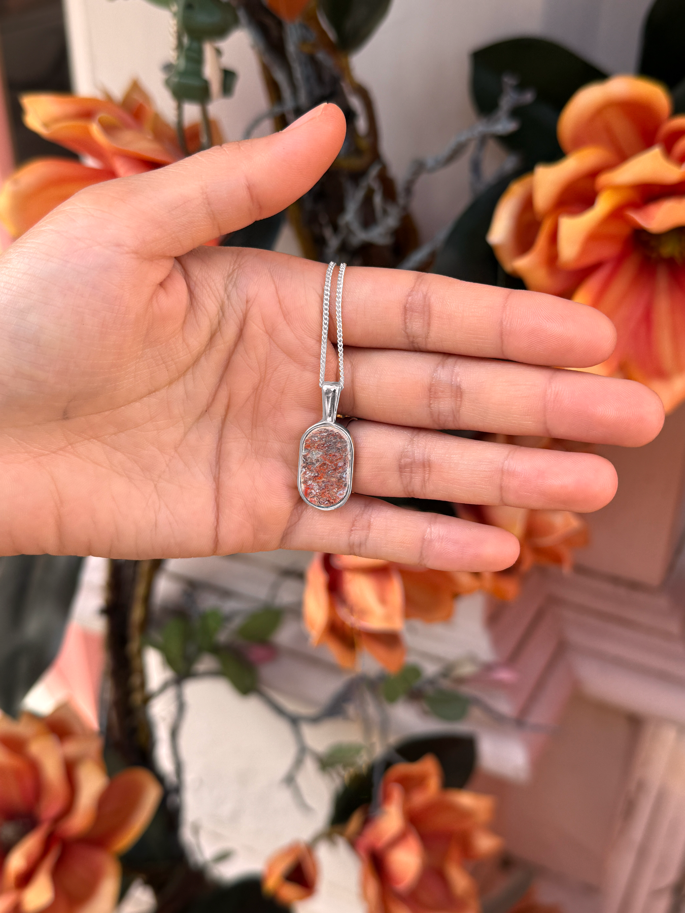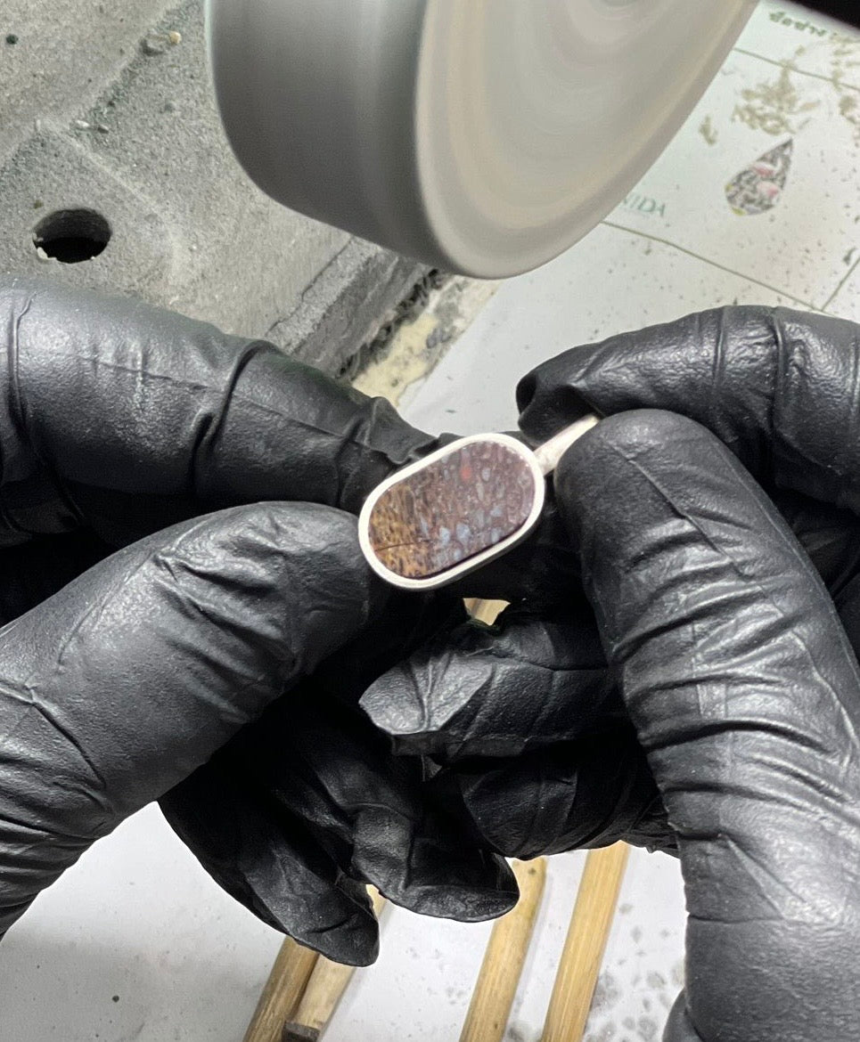 Offering a modern take on a timeless men’s staple  — our Dinosaur bone fossil is inlaid into a sleek sterling silver bar pendant. Obtained from a registered palaeontologist, this remarkable material is as rare as it is beautiful.